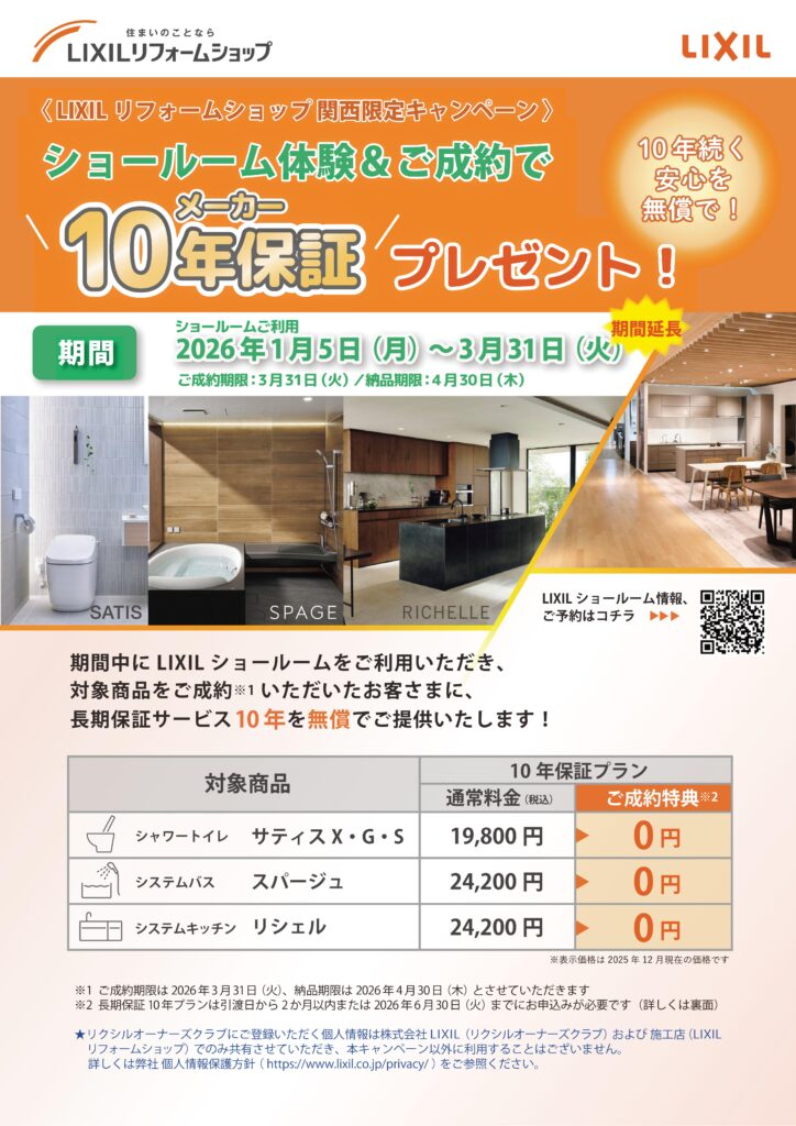 長期保証サービス(10年)を無償で